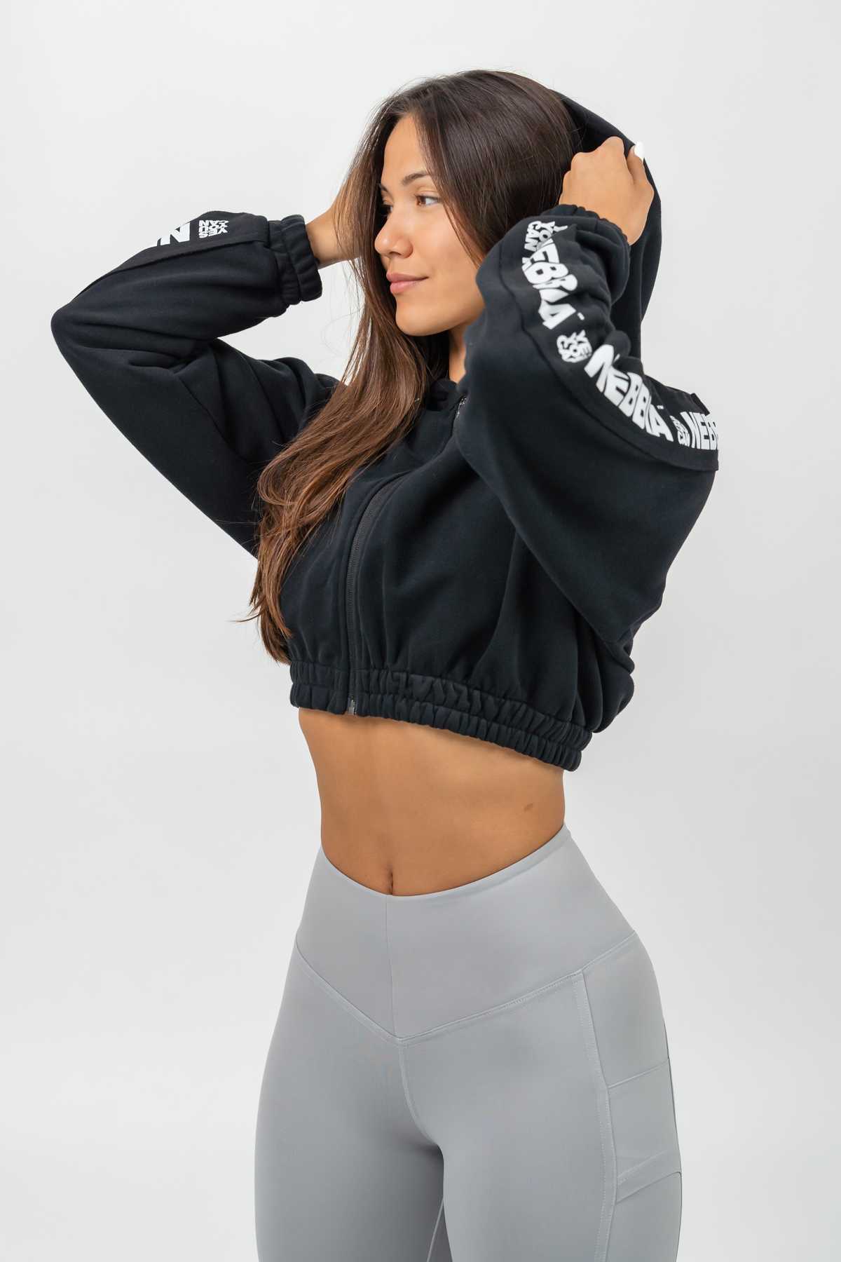 Women’s crop hoodie with iconic NEBBIA straps and a practical hoodie will not let you cool down too quickly after a hard training. It will keep you warm even on colder days.