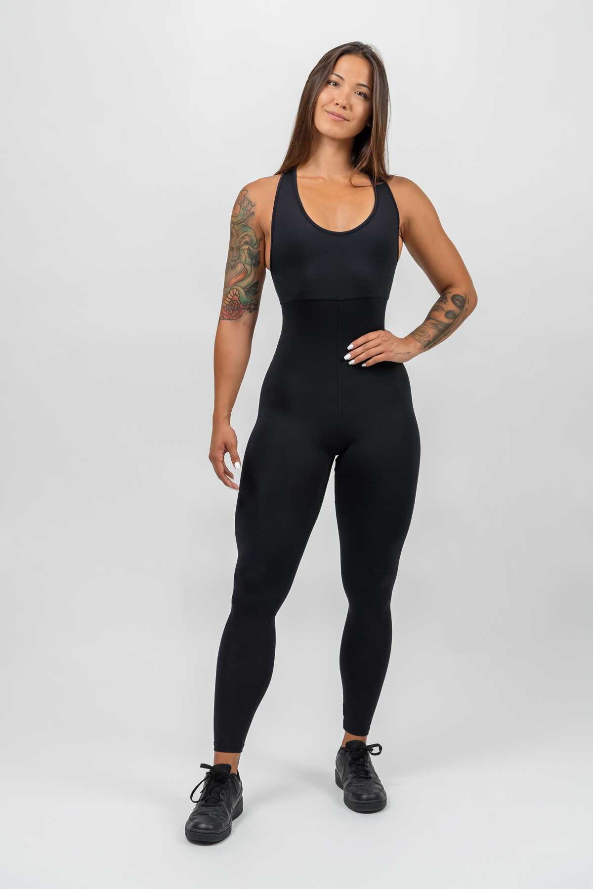 The collection is made from the popular POWER material – a highly functional material that wicks away sweat and dries quickly. Thanks to the sophisticated cut, black and white classic and durable material, the fitness jumpsuit is not only a fashion accessory, but also a truly functional piece of clothing that will help you discover the hero in yourself and focus on winning all your fights.