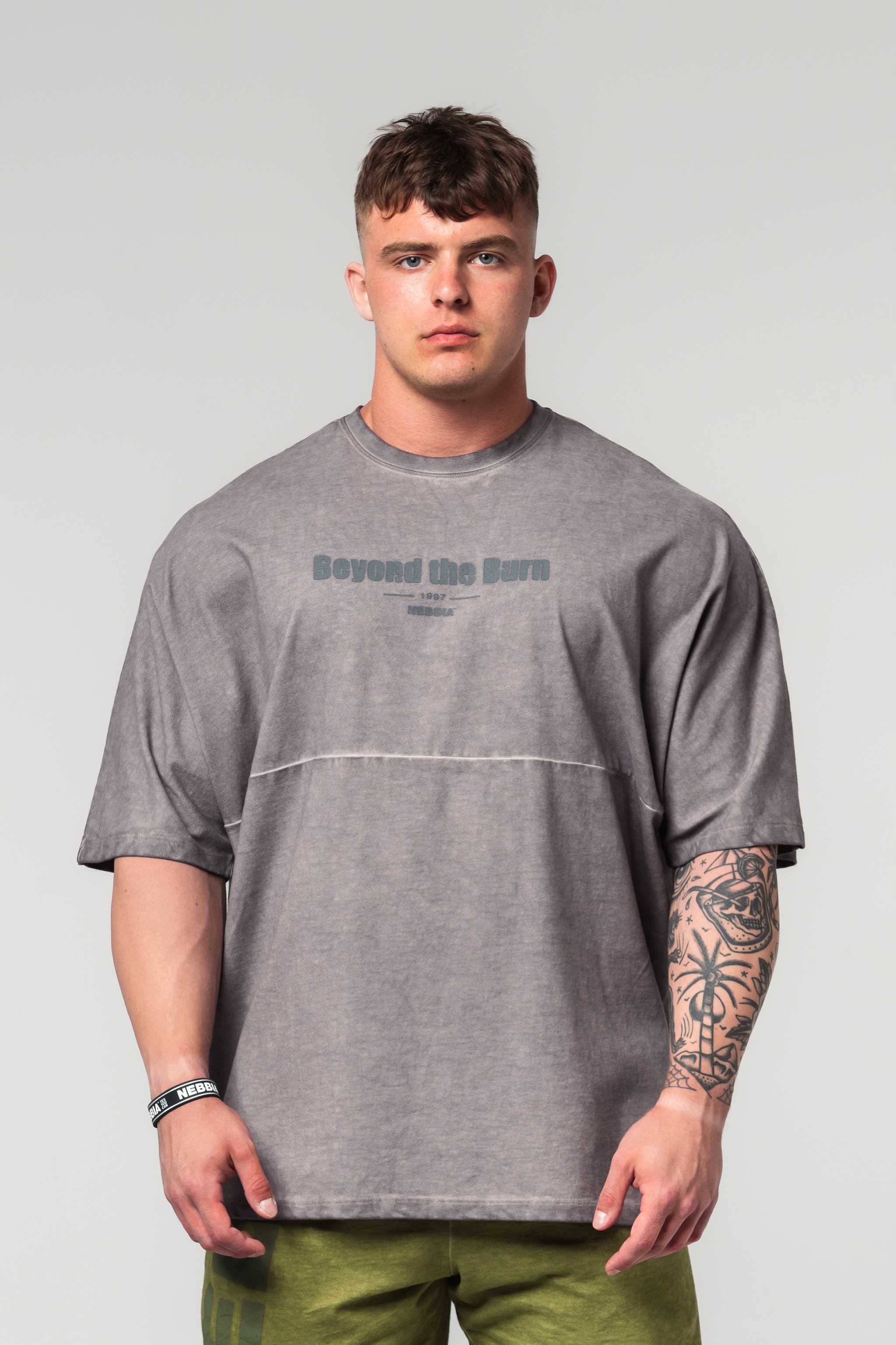 The oversized T-shirt with longer sleeves is exactly what you need to accentuate your physique. Its truly oversized fit with a dropped shoulder effect makes you look bigger, while the bold NEBBIA print shows off your broad back. Plus, the heavyweight cotton with a washed-off design enhances the muscular look of your chest.