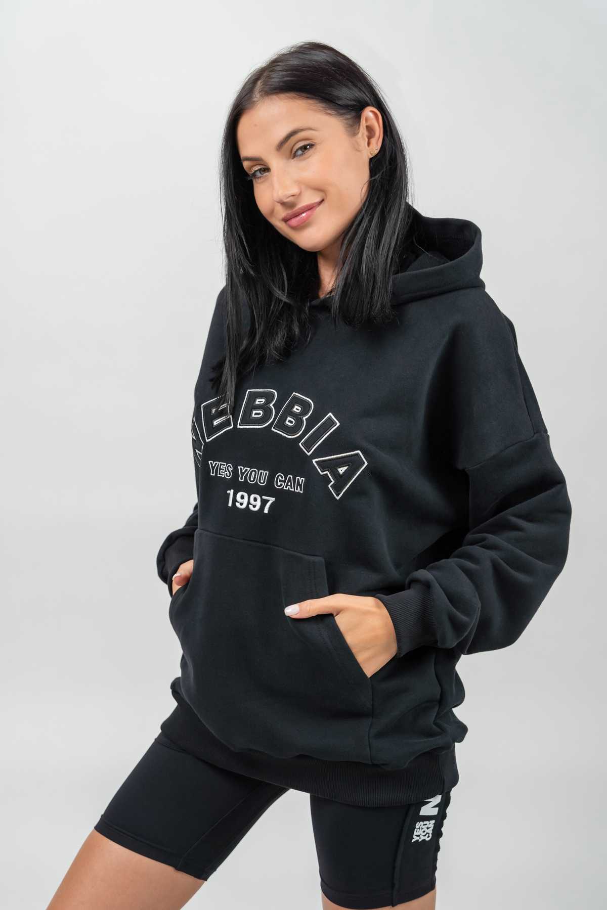Loose fit, maximum comfort, a hoodie for those moments when you want to be in the gym with your music and focus solely on your goals. Specially crafted with LIFE-PROOF cotton blended with polyester, so durable that you'll probably grow old together with this hoodie ;) And the embroidered 3D NEBBIA logo is the perfect finishing touch to reminisce about the good times we're bringing back! This oversized hoodie goes with just about everything. We won't tell you how to wear it; we're sure you'll come up with the best outfits yourself.